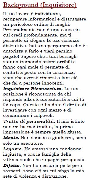 I background, da manuale, possono essere proprio inventati, seguendo le linee guida. Se avete già idee, potete concordarne uno col DM. Altrimenti, potete sceglierlo dall’elenco di quelli proposti (a p.125).