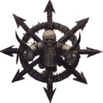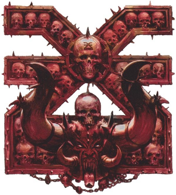 Khorne dio della rabbia, della violenza, della guerra e dell’onore marziale, una visione ovviamente estremizzata dell’onore, guida le sue legioni di demoni e guerrieri dal suo trono di teschi.
