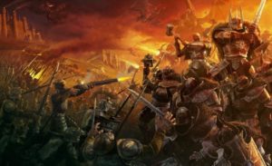 Questo successo portò la Games Workshop, casa editrice e inventrice del gioco, ad ampliare l’universo di gioco e trasportarlo in un futuro remoto dominato da un Impero galattico in lotta con varie razze aliene, il tutto condito da atmosfere diesel-punk e gotiche care a romanzi come Starship Trooper, così nacque nel 1987 Warhammer 40’000 o, per i fan, WH 40k. Ovviamente a questo ampio parterre di incarnazioni non poteva mancare una versione di ruolo e nel 1996 la Games-Workshop decise di affiancare, al suo