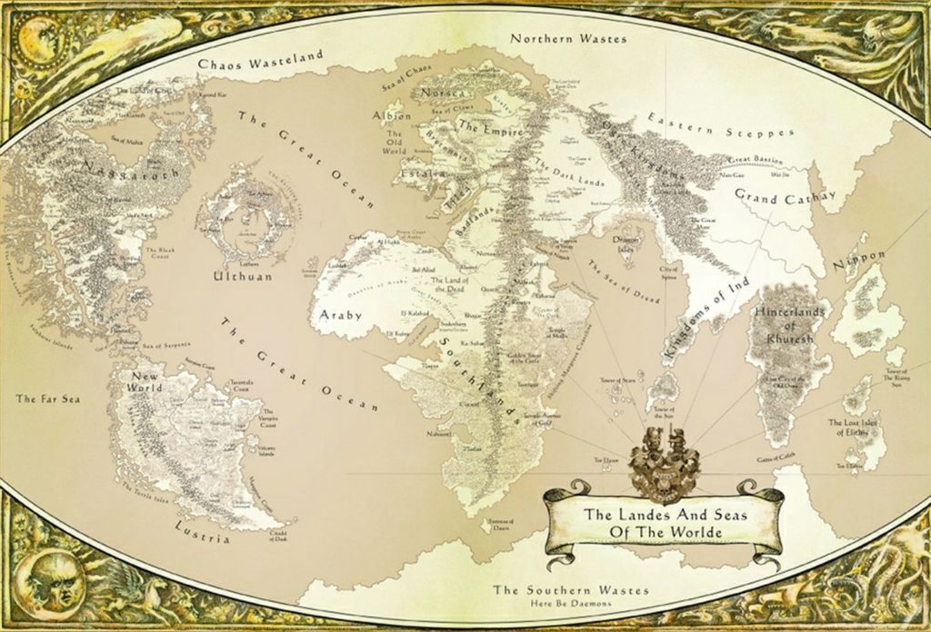 La vera innovazione che ha introdotto questo gdr è proprio lo spostare il focus dal campo di battaglia alle strade delle città del Vecchio Mondo e oltre. Poter vivere le città di Altdorf o Middenheim, coglierne le atmosfere, oppure orientarsi nelle buie foreste del Reikland a caccia di cultisti degli dei del Caos, magari vestendo i panni di un cacciatore di streghe, mentre nei lontani campi di battaglia si sfidano gli eserciti. Un mondo paradossalmente nuovo e inesplorato, ricco di sfaccettature e opportunità, un universo immaginario che si ispira pesantemente al primo rinascimento del nostro mondo, visto in chiave oscura e con preponderanti contaminazioni high fantasy, come d’altronde è facilmente deducibile, oltre che dalla mappa del mondo, anche dai nomi delle nazioni e dei luoghi che talvolta sembrano bizzarre parodie delle loro controparti reali, ma di questo parleremo più approfonditamente nell’articolo dedicato all’ambientazione.