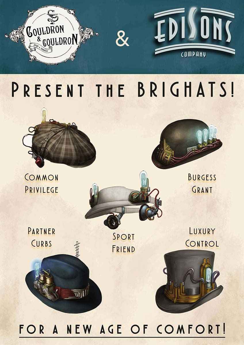 Gli scienziati della EdiSons Company sono anche gli inventori dei cosiddetti “brighat”, cappelli in grado di potenziare le capacità mentali di chi li indossa che, dopo numerose modifiche per renderli efficienti al 100%, permettono anche di avere il controllo su tutti i macchinari elettrici.