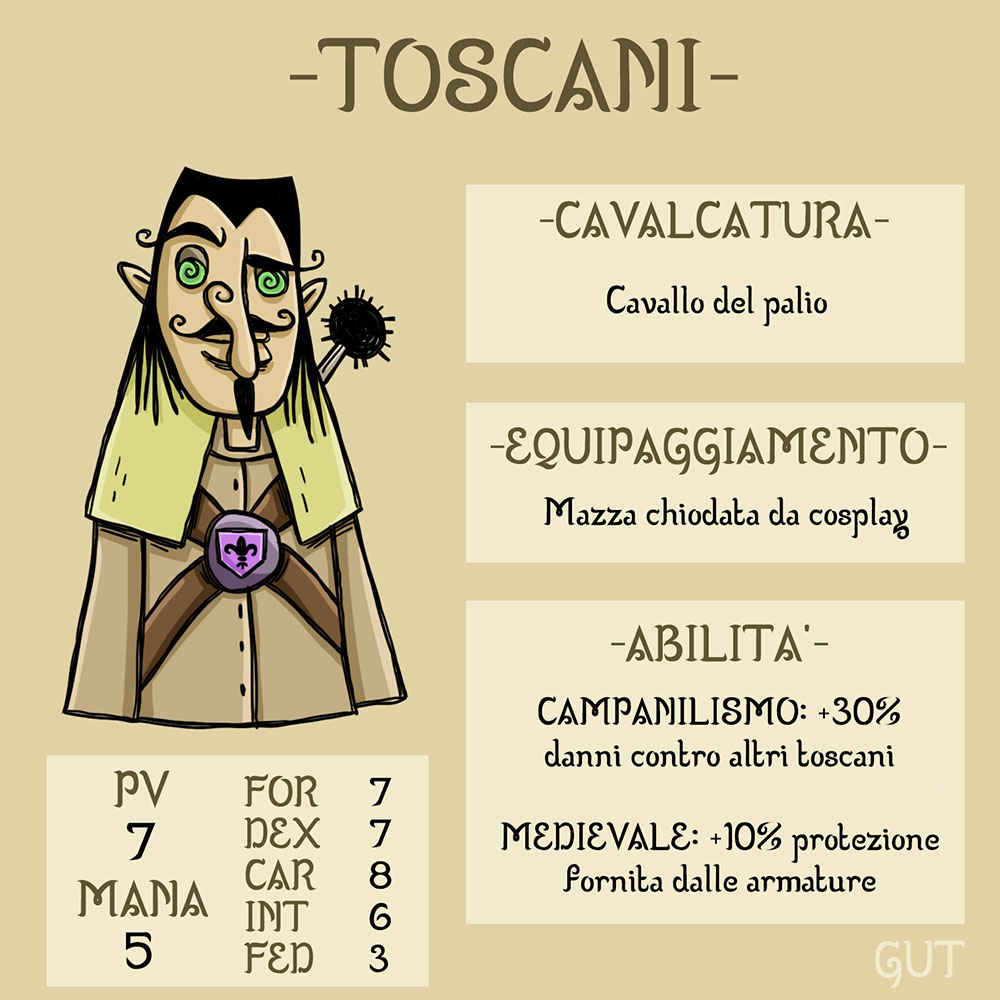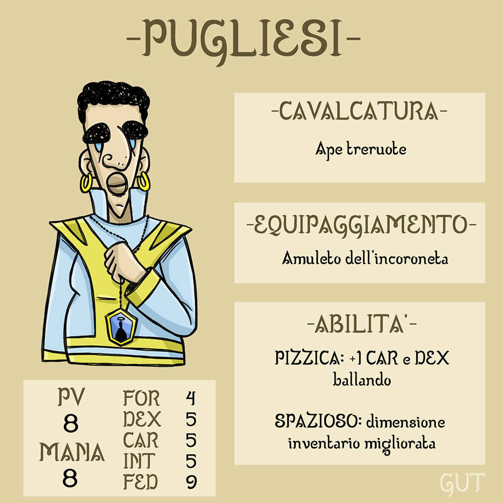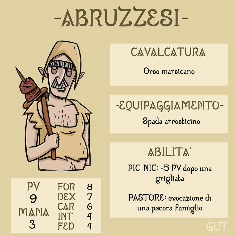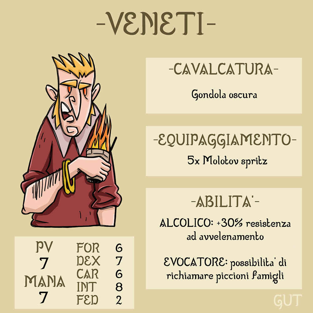 Vi siete mai chiesti come potrebbero essere le regioni d’ Italia se fossero delle classi per un GDR fantasy? La risposta arriva dalla pagina Gut – Disegni Random che ci propone questa divertentissima gallery con tanto di schede con le diverse caratteristiche per ogni regione.