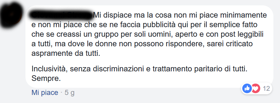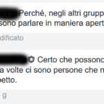 Sinceramente più fastidio genera questo piccolo gruppo più ho le prove che serve, e che bisogna parlarne; se non avesse generato nessuna reazione avrebbe voluto dire che era solo l’ennesimo gruppo su Facebook.