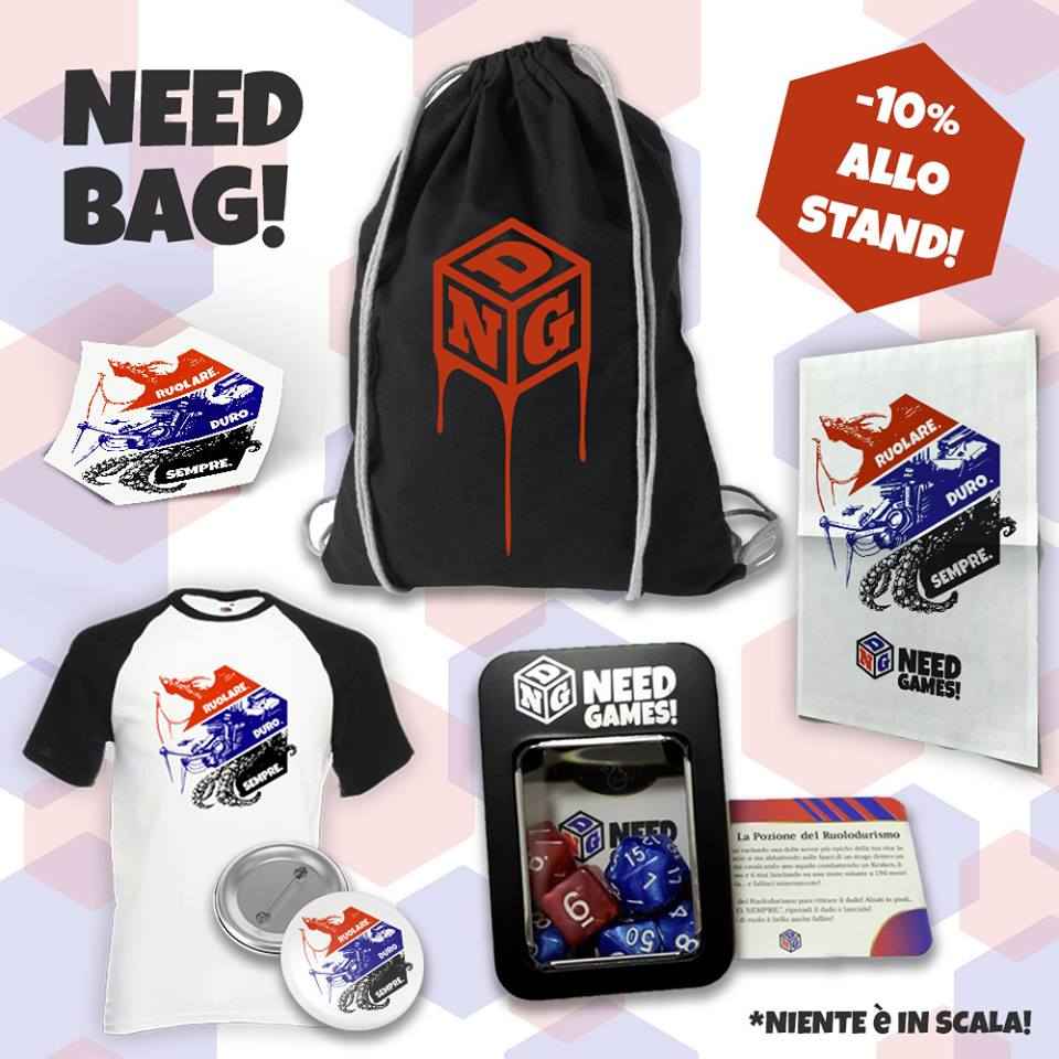 Certo questa è una borsa di cui avrete bisogno (ba dum tss). Ve beh, questo accessorio è tutto ciò che un fan della Need Games può volere. Contenente anche il set di dadi sopracitati sarà venduta per 45€ e i primi 30 che decideranno di acquistarla avranno il piacere di giocare con uno dei Master VIP della casa editrice.