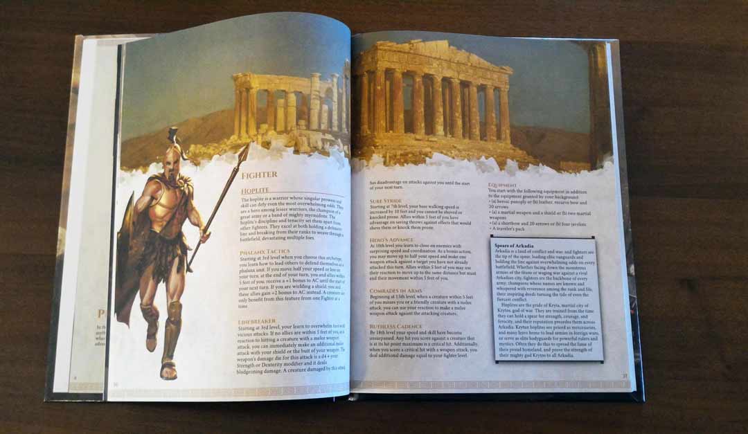Ok, basta con le robe smielate: ecco le foto del manuale, come promesso. Portate un po’ di greca epicità nelle vostre campagne di D&D 5E, mi raccomando.