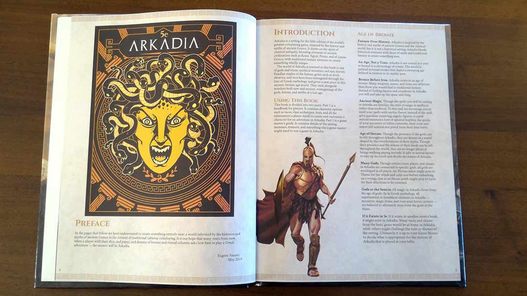 Come gli autori premettono, giustamente, Arkadia non è un’ambientazione storica, ma fantasy con elementi storici e mitologici.