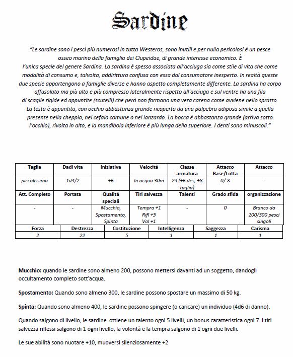 Pur descrivendo le sardine come inutili e per nulla pericolose, questa persona ha ritenuto superfluo avere regole per gli intrighi politici, mentre invece fondamentale avere delle regole che prevedono persino il modo in cui le sardine salgono di livello (!), aumentando la loro forza di volontà, o che devono essere almeno 300 per poter spostare un massimo di 50kg.
