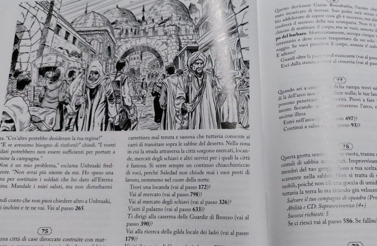 Dopo una prima lettura dedicata al testare l’opera in purezza, abbiamo recuperato tutti i paragrafi non letti, anche quelli dedicati ai personaggi che non avevamo scelto per il nostro party, e messo a confronto alcuni bivi narrativi particolarmente intricati, così da avere un quadro completo dell’esperienza.