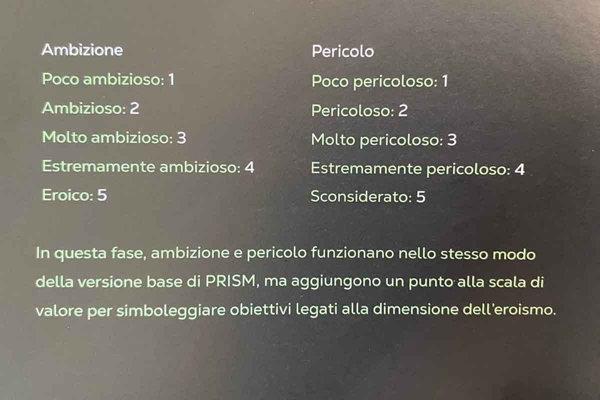 Dalla lettura del manuale non è molto chiaro se come in PRISM base, anche in GREEN sia possibile affidare la Parte dell’Avventura a più giocatori. Nelle nostre giocate tuttavia abbiamo tuttavia provato questo approccio che è risultato davvero interessante.