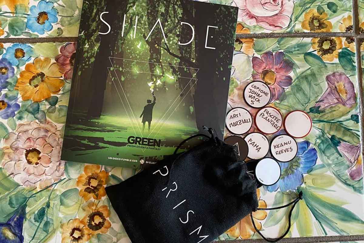 Ebbene, al Play Festival del Gioco di Modena abbiamo scoperto che questo nostro sogno era in realtà già in programma nelle teste dell’autore Claudio Pustorino, di Fumble GDR e di MS Edizioni, i quali hanno presentato in fiera due SHADE, ossia due sfumature del Prisma: SHADE GREEN (no, non la canzone degli Incubus), a tema Fantasy, e SHADE YELLOW, a tema Giallo (di cui arriverà una recensione nelle prossime settimane).