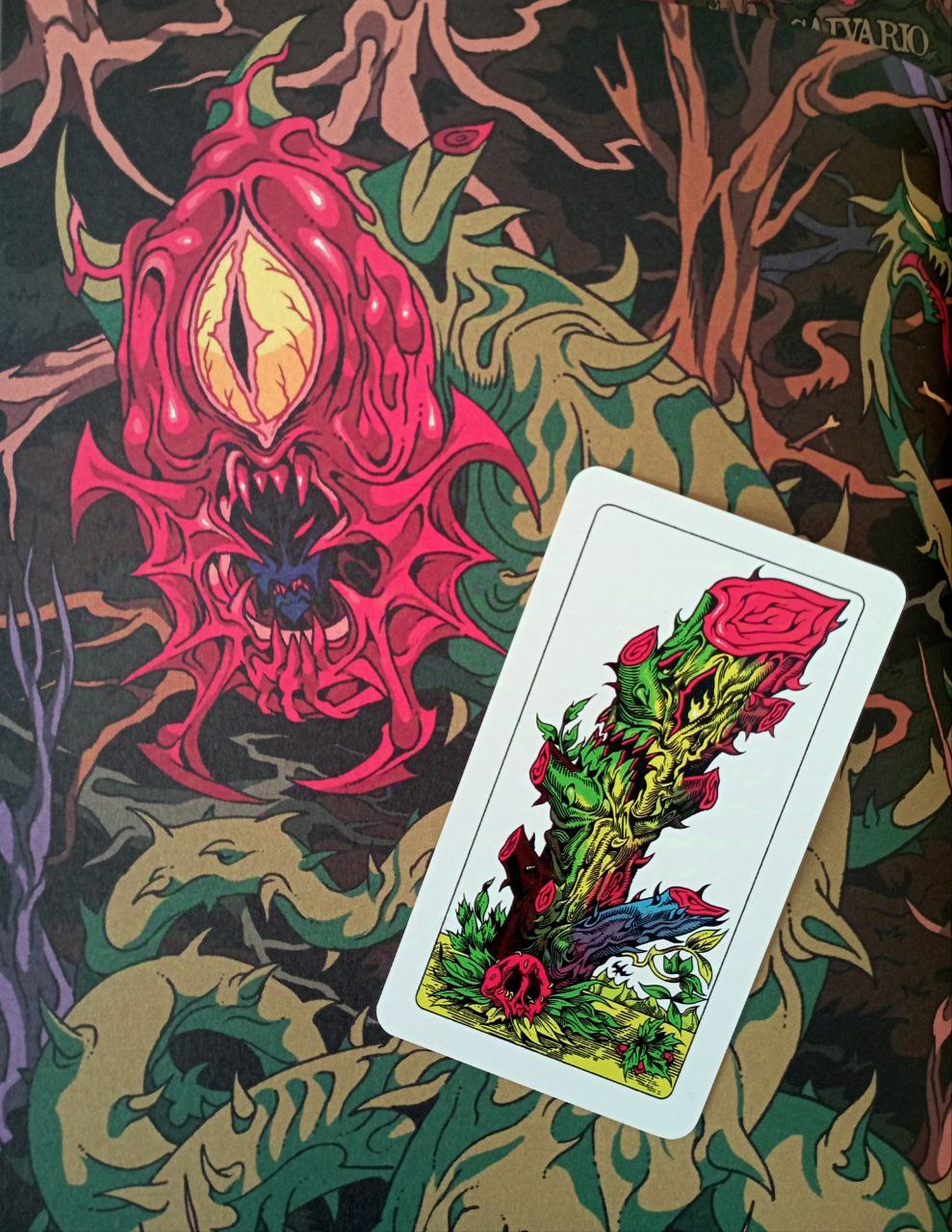 Ognuna delle quattro sezioni è introdotta da una mappa e una descrizione per procedere poi con l’alternare un diabolico artwork della creatura in questione nato dalla matita di David Genchi, e di fianco la sua descrizione, abitudini, carta corrispondente, statistiche, patti e frattaglie che servono per evocarlo.