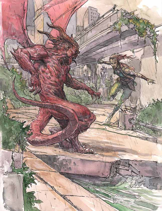 È un po’ come se le Megalopoli distopiche fossero gli hub del mondo, e le Fratture fossero i dungeon… almeno questa è l’impressione che ne ho avuto. La Frattura di questa avventura, tra l’altro, è ben descritta in un capitolo precedente: si chiama Frattura del Diluvio e comprende anche delle interessanti tabelle di tiro per incontri e aree casuali.