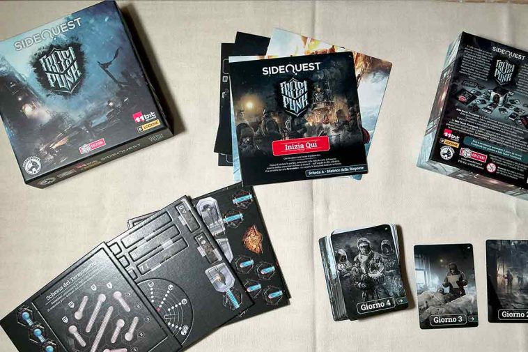 Sidequest: Frostpunk è un escape room da tavolo con un focus narrativo e cooperativo, ma che non abbandona le componenti gestionali del titolo a cui si ispira. La scatola in sé è pronta all’uso e guida i giocatori alla preparazione del tavolo in maniera inequivocabile.