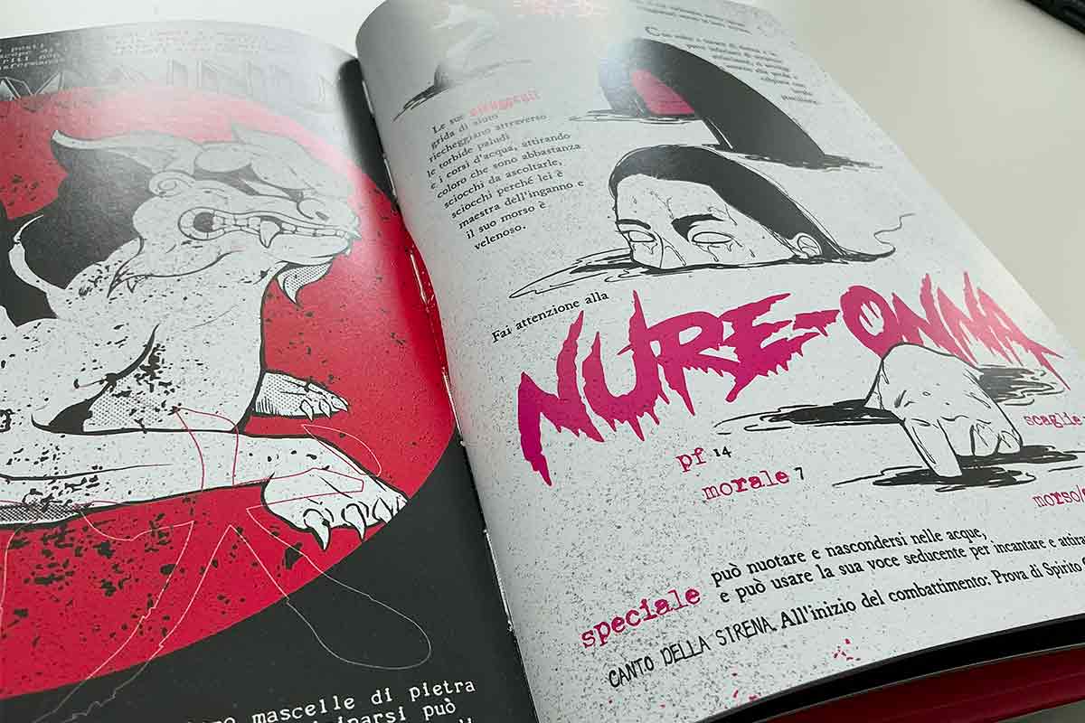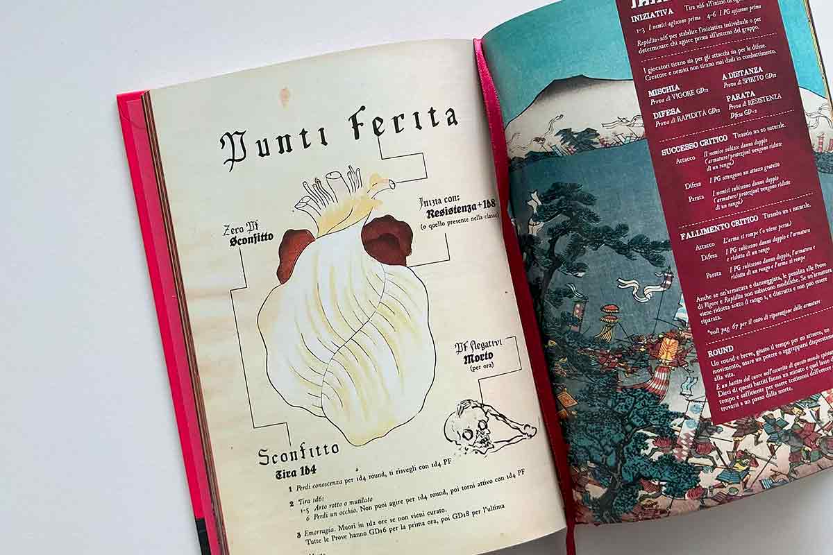 Il Manuale di Rōnin è uno dei manuali più graficamente interessanti e ispirati su cui abbiamo messo mano di recente. Ogni pagina è un’opera d’arte a sé stante, in una danza di Font e Colori, Rōnin racconta una storia già nella stessa trama della sua impaginazione.