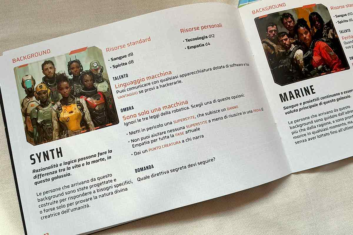 Ad aiutare la sensazione di condanna dietro l’angolo ogni personaggio avrà una sua Ombra in base al suo background. L’ombra rappresenta la tentazione a cui il personaggio non riesce a resistere e che mette in pericolo lui e/o altri membri della squadra.