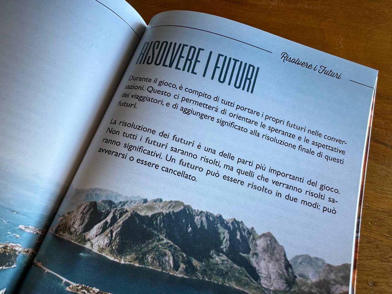 Lo stesso manuale di gioco è un piccolo spillato con immagini e grafiche che richiamano proprio atmosfere da viaggio in auto, mentre l’autrice spiega tra le pagine proprio i fondamenti di questo percorso: deve essere un viaggio su ruote e deve essere preferibilmente ambientato in un’epoca dove non esisteva ancora la navigazione satellitare, magari tra gli anni ’80 e ’90.