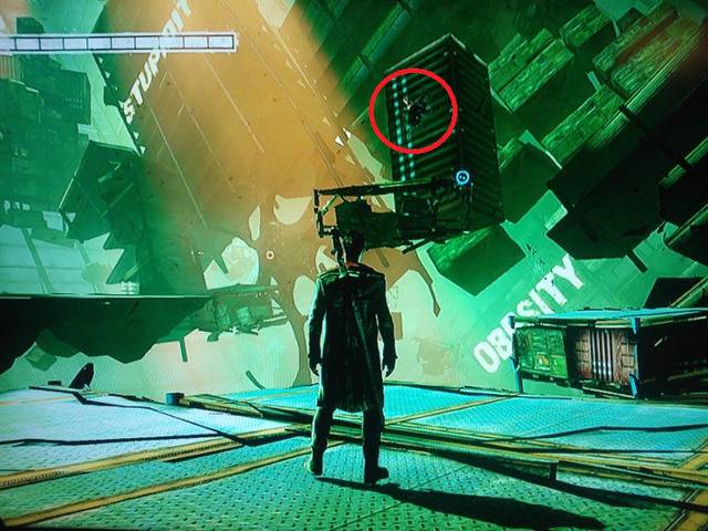 Anima Smarrita: Dopo essere saltati dentro il secondo anello di spinta, avvicinate il container sulla sinistra con la catena rossa. Salite sul container per ritrovarvi nel punto mostrato in foto e raggiungere così la zona con l’anima.