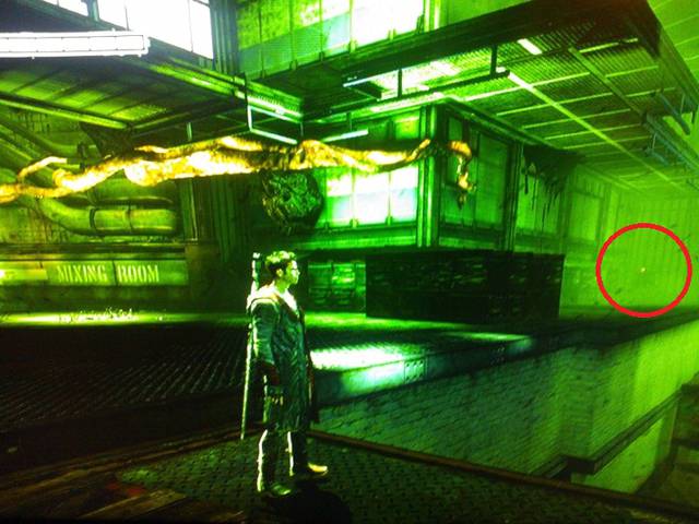 Anima smarrita: Distrutta la prima telecamera, salite le scalette di sinistra. In cima, voltatevi e guardate in alto.