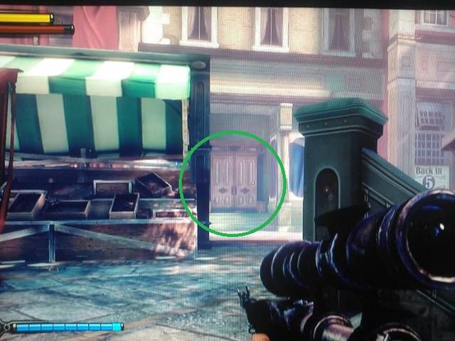 -Entrati nel primo edificio, chiedete ad Elizabeth di far apparire un gancio e salite sull’impalcatura. ( CAPPELLO-TOCCO ELETTRICO )