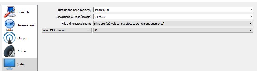 Importante anche settare il filtro di rimpicciolimento su Bilineare, al fine di alleggerire ulteriormente il carico del proprio streaming e impostare gli FPS a 30.