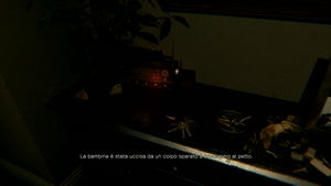 Nel corridoio, precisamente sopra il mobile con l’orologio digitale, è presente la fotografia di Lisa (la moglie del folle omicida) incompleta. La raccolta dei frammenti della fotografia sembra essere opzionale, tuttavia noi siamo arrivati alla conclusione completando anche questo puzzle e vi suggeriamo di fare altrettanto. I frammenti della foto sono 6, in corrispondenza di oggetti diversi che dovranno essere zoomati.