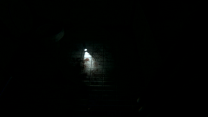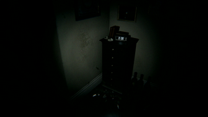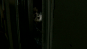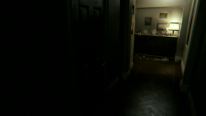 Percorrete nuovamente il corridoio fino in fondo. La porta che conduce alle scale si chiuderà davanti a voi mentre vi avvicinate e subito dopo sentirete la porta del bagno dietro di voi aprirsi. Voltatevi e recatevi verso di essa. La porta sarà semplicemente socchiusa e non potrete ancora entrate. Accostatevi e premete R3 per effettuare lo zoom nella fessura. Immediatamente scorgerete una figura richiuderla in tutta fretta. A questo punto la porta in fondo al corridoio si aprirà e potrete concludere il loop.
