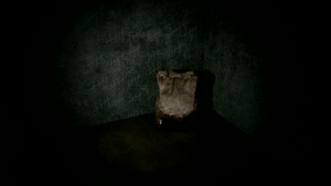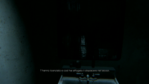 Una volta risvegliati dopo la “possessione” del fantasma, vi ritroverete nella stessa stanza di prigionia in cui eravate all’inizio. Stavolta però avrete la torcia e potrete osservare meglio la stanza. In un angolo buio scorgerete un tavolo e sopra di esso un sacchetto di carta insanguinato contente qualcosa di organico. Effettuando con R3 lo zoom su di esso, assisterete ad un dialogo particolare. L’incontro con il fantasma avuto prima coincide con la chiusura del loop.