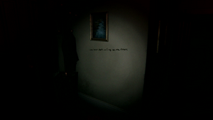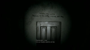 Stavolta anche la parte iniziale del corridoio sarà illuminata di rosso e il frigorifero appeso si muoverà avanti e indietro. Il pianto di un bambino invaderà la casa e sul muro vicino all’ingresso vi sarà la scritta: “I can hear them calling me from”. La scritta è chiaramente incompleta, e recandovi vicino al mobile con il telefono bianco scorgerete sul muro a sinistra la scritta: “HELLO!”. Le lettere di questa parola serviranno per risolvere il puzzle. Recatevi nuovamente all’ingresso e noterete che la lettera “L” si sarà trasferita vicino alla scritta precedente. Fate avanti e indietro nel corridoio per trasferire tutte le lettere e completare la scritta: “I can hear them calling me from HELL”. A questo punto sentirete una risata e il giro di chiave. Attraversate quindi la Porta Loop per concludere.