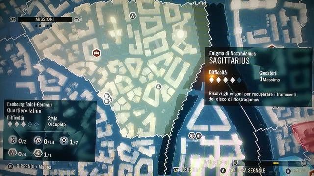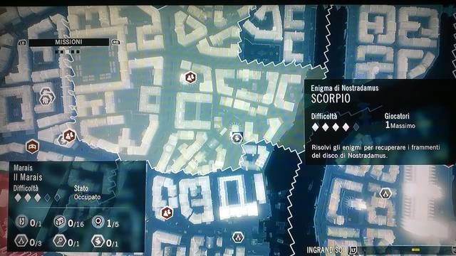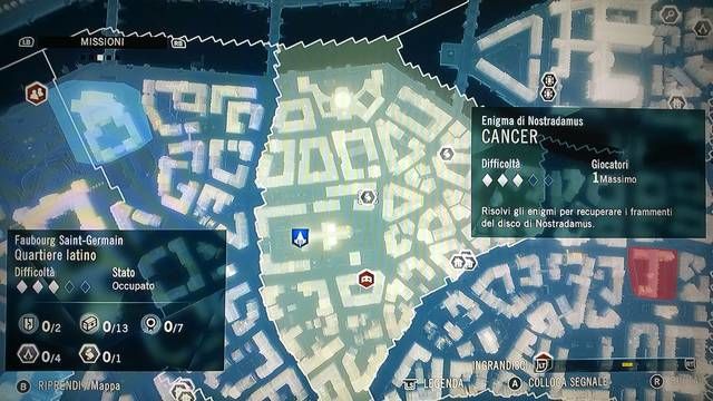 Da un certo punto della trama in poi, appariranno sulla mappa delle icone con una pergamena srotolata. Queste icone attivano gli Enigmi di Nostradamus che servono per ritrovare i frammenti del disco perduto degli Assassini, capace di sbloccare l’Armatura Medievale nascosta nei sotterranei del Cafè Thèatre. Risolvendo un enigma sbloccherete il trofeo/obiettivo PREVISIONI ACCURATE, risolvendoli tutti e sbloccando così l’armatura otterrete anche il trofeo/obiettivo DAL PASSATO.