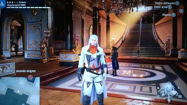 Una volta superati tutti e 18 gli Enigmi di Nostradamus, di cui trovate la soluzione sotto questa sezione, potrete interagire con il disco situato davanti all’armatura, al di sotto del Cafè Thèatre.