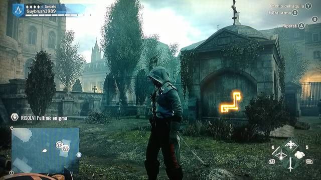 Guardate nei pressi del patibolo, sotto la facciata dell’Hotel de Ville dove avete attivato l’enigma.