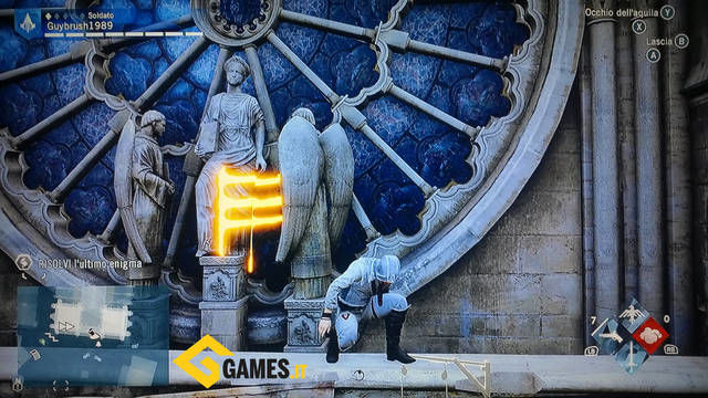 Nella cupola centrale del Pantheon, subito dietro a dove avete attivato l’enigma, guardate nel punto indicato del colonnato circolare.