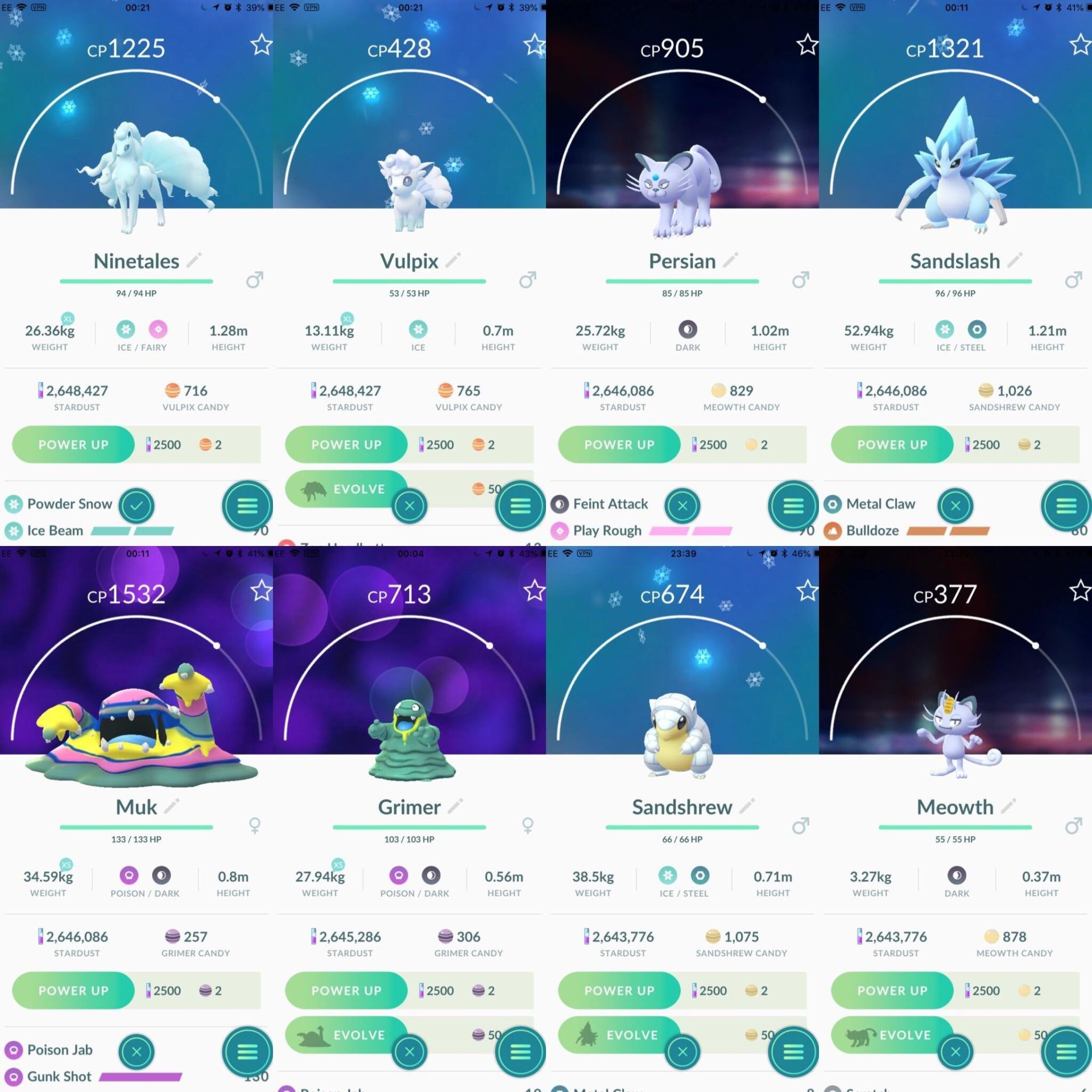 Attualmente da queste uova si possono ottenere solo le forme Alola di Vulpix, Grimer, Sandshrew e Meowth.