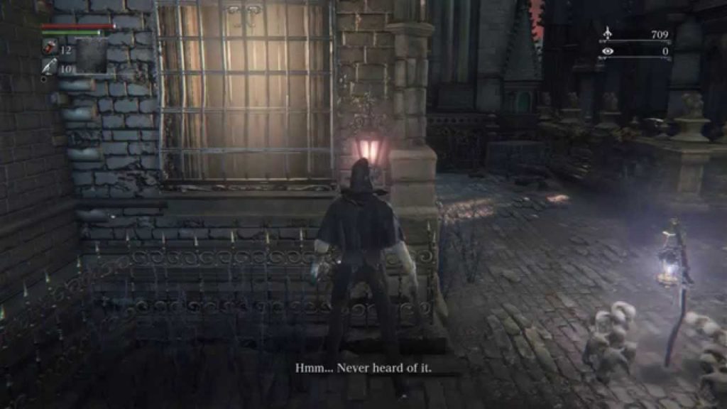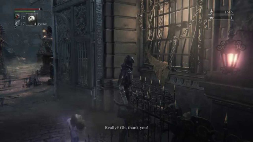 LUOGO – Probabilmente Gilbert sarà il primo NPC con cui parlerete. Appena attivata la Lanterna di Yharnam Centrale, potete parlargli attraverso la finestra alla destra del cancello sulla sinistra.