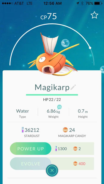 Magikarp si evolve in Gyarados (tipo acqua/volante) uno dei Pokémon più forti presenti nel gioco. Magikarp è tuttavia nella sua forma base un pokemon inutile perchè non ha attacchi! Bisogna quindi catturarlo e farlo evolvere, al costo di ben 400 caramelle. Vale la pena? Decisamente sì, Gyarados vi regalerà tantissime soddisfazioni grazie ai suoi attacchi molto potenti e alla capacità di imparare mosse di tipo drago.