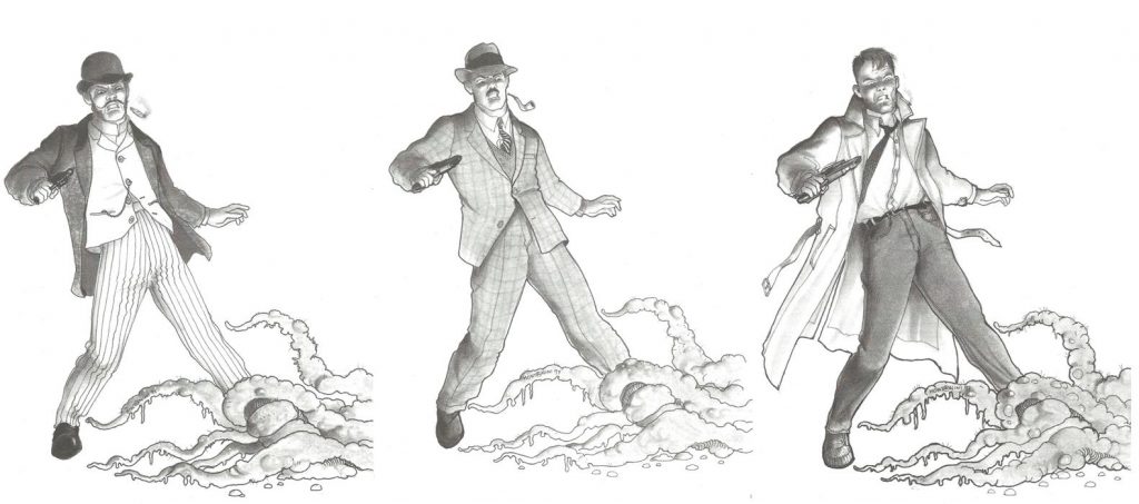 Ad esempio, avremo uno o due Investigatori Privati, titolari di uno studio che ricevono l’incarico che è l’incipit dell’avventura; in passato hanno incastrato un Criminale ma hanno rinunciato a denunciarlo in cambio del suo aiuto quando gli sarebbe servito; un Ispettore di Polizia è un loro caro amico, insieme hanno risolto diversi casi in passato con guadagno di tutti; un Vagabondo è sempre stato i loro occhi e le loro orecchie su quanto succede in strada e nessuno come lui sa come rendersi invisibile e raccogliere informazioni ovunque, ci sarà bisogno di lui per quest’indagine che si prospetta già particolarmente bizzarra e difficile.