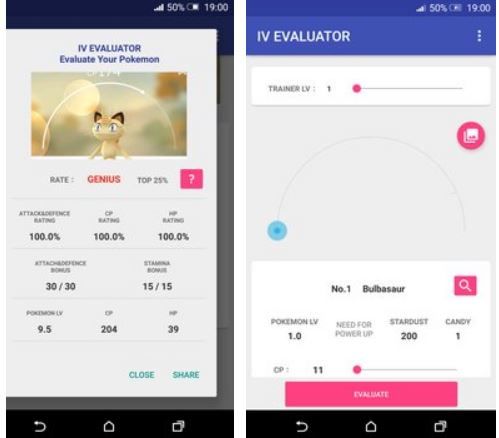 - Pokemon Evaluator per Android E’ un app che potete installare direttamente da Google Play. A differenza di molte altre alternative non necessita di versione APK e la trovate comodamente nello store. Inoltre, è assolutamente la migliore in circolazione per Android! Come funzione? E’ presto detto: