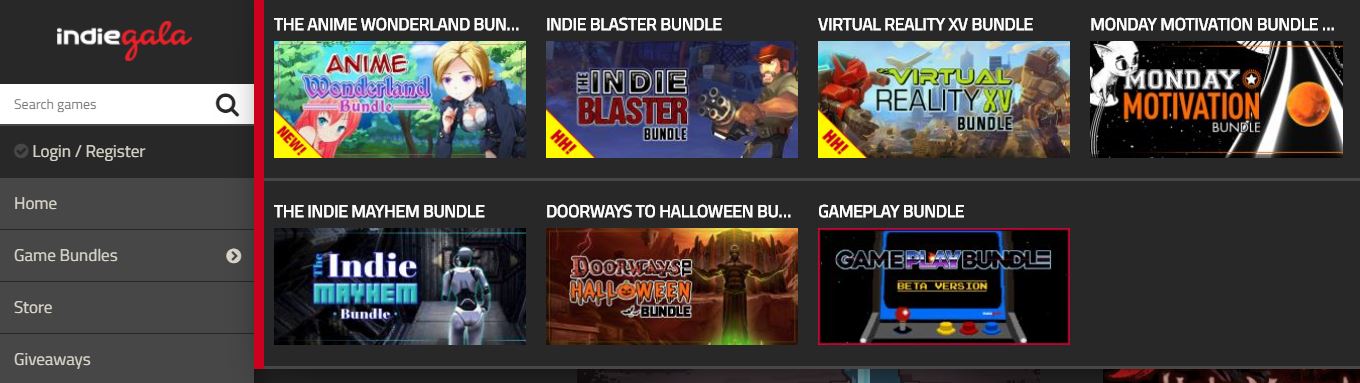 Chiudiamo il trittico di sito di bundles con uno dei migliori alleati per gli amanti dei titoli indie, quelli più sconosciuti e nascosti. IndieGala non offre la qualità degli indie “premium” che girano nei bundle di Humble ma, a suo modo, cerca di coprire le “mancanze” dei due servizi già citati.