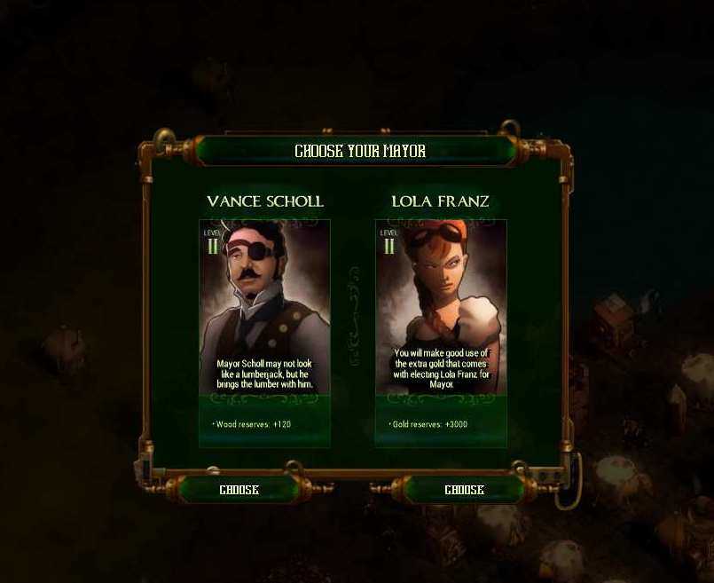 Ogni volta che si arriva al cap ci si ritrova davanti ad una scelta tra due Sindaci scelti casualmente da una lista. Ogni sindaco ha dei bonus specifici leggibili in fase di scelta.