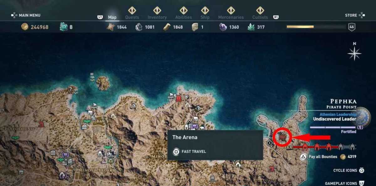 Puoi navigare fino a Pephka in qualsiasi momento dopo la Sequenza 2, ma ti avvertiamo che i nemici dell’arena partono da livelli abbastanza alti, dal livello 22 al livello 50, quindi non è roba da fare all’inizio dell’avventura.