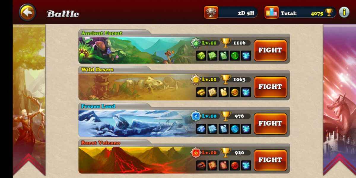 I tesori del drago prima del livello 70 sono quasi inutili, Salvo gli anelli che sceglierete per il vostro arco, evolveteli e metteteli al massimo il prima che potete, aumentano considerevolmente il danno del vostro arco. A fondo scala ce ne sono alcuni interessanti, come il Coin of Ancient che aumenterà il quantitativo di soldi guadagnati per ogni livello o lo Shield of empire che aumenterà la percentuale di salute del vostro muro.