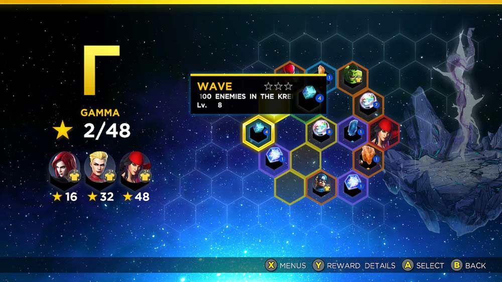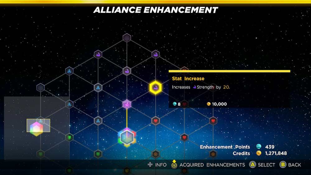 Oltre a questi, bisogna tenere d’occhio altri due elementi di gioco importantissimi, ossia i punti miglioramento alleanza e i punti abilità, che insieme saranno determinanti per aumentare numero ed efficacia dei poteri di ogni personaggio e decretare l’esito di una battaglia contro i boss più ostici e di livello intergalattico.