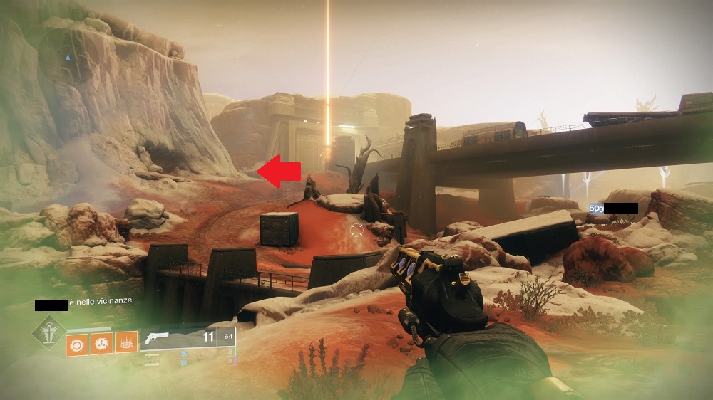 Poco dopo aver girato l’angolo potrete dirigervi verso il piccolo oggettino inquadrato qua sopra. Dopo aver interagito con esso è tutto in discesa e sia il resto di questa missione che tutto lo svolgimento di Un pezzo dal passato scorreranno seguendo le semplici istruzioni date al vostro Guardiano. Così facendo otterrete il vostro IKELOS_HC_v1.0.1, ma tornate comunque da Ana Bray per poter iniziare le quest esotiche per il Simulatore Dormiente e la Lancia di Polaris.