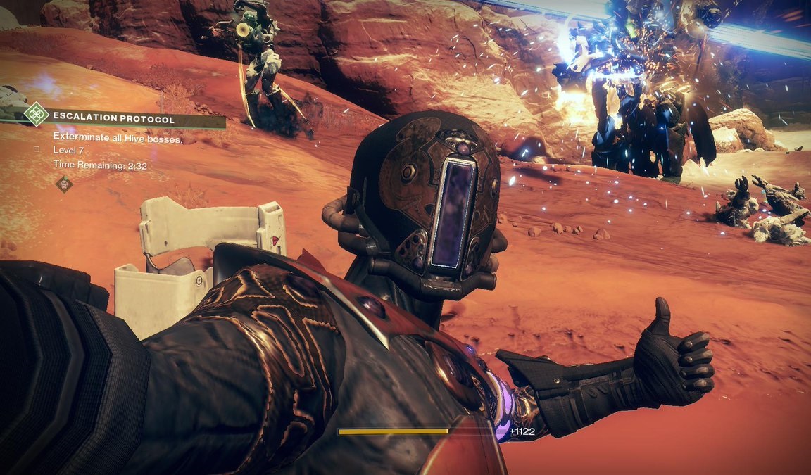 Nella seconda settimana del ciclo è presente Kathok, un boss le cui meccaniche saranno sicuramente familiari a chiunque abbia affrontato Echtar ai tempi di Destiny: Il Re dei Corrotti. Questo potente Cavaliere dell’Alveare apparirà con uno scudo che lo renderà immune a qualsiasi attacco e per renderlo vulnerabile sarà necessario usare le Spade lasciate cadere dai tipici Cavalieri del Protocollo d’Intensificazione, l’unica arma capace di danneggiare il suo scudo. Una volta abbattute le sue difese, sarà possibile danneggiarlo con il resto del vostro arsenale.