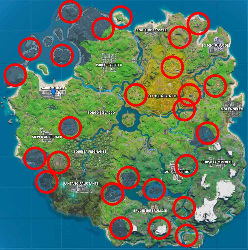 Questa sfida chiede al giocatore di andare a scoprire tutti quanti i luoghi indicati presenti sulla nuova mappa di gioco. I luoghi indicati sono tutti quei luoghi dotati di nome che appaiono sulla mappa di gioco e che appaiono coperti dai punti interrogativi durante le vostre prime partite in questo Fortnite capitolo 2.