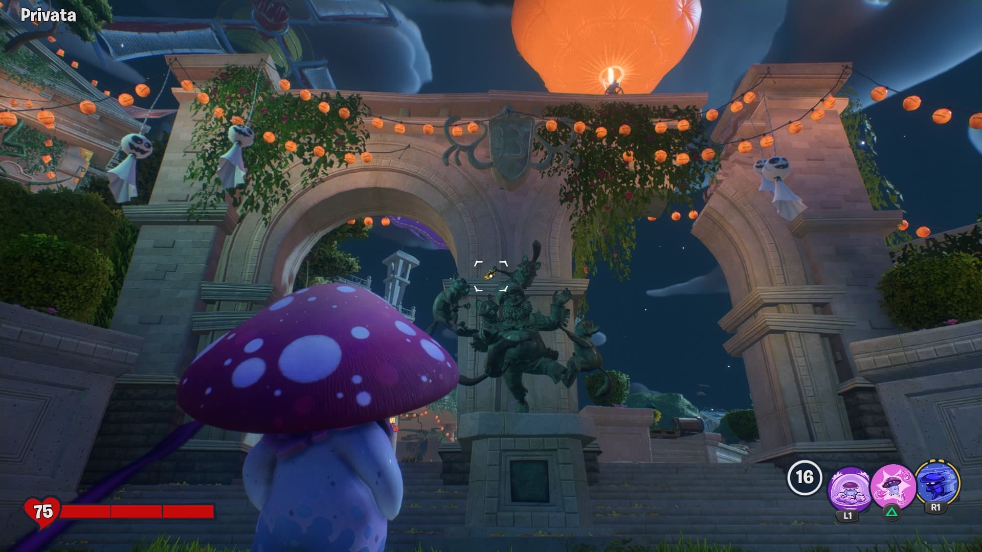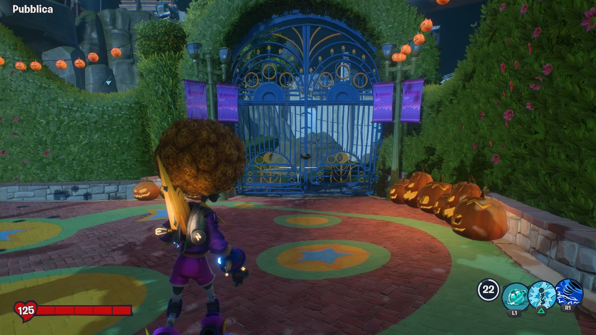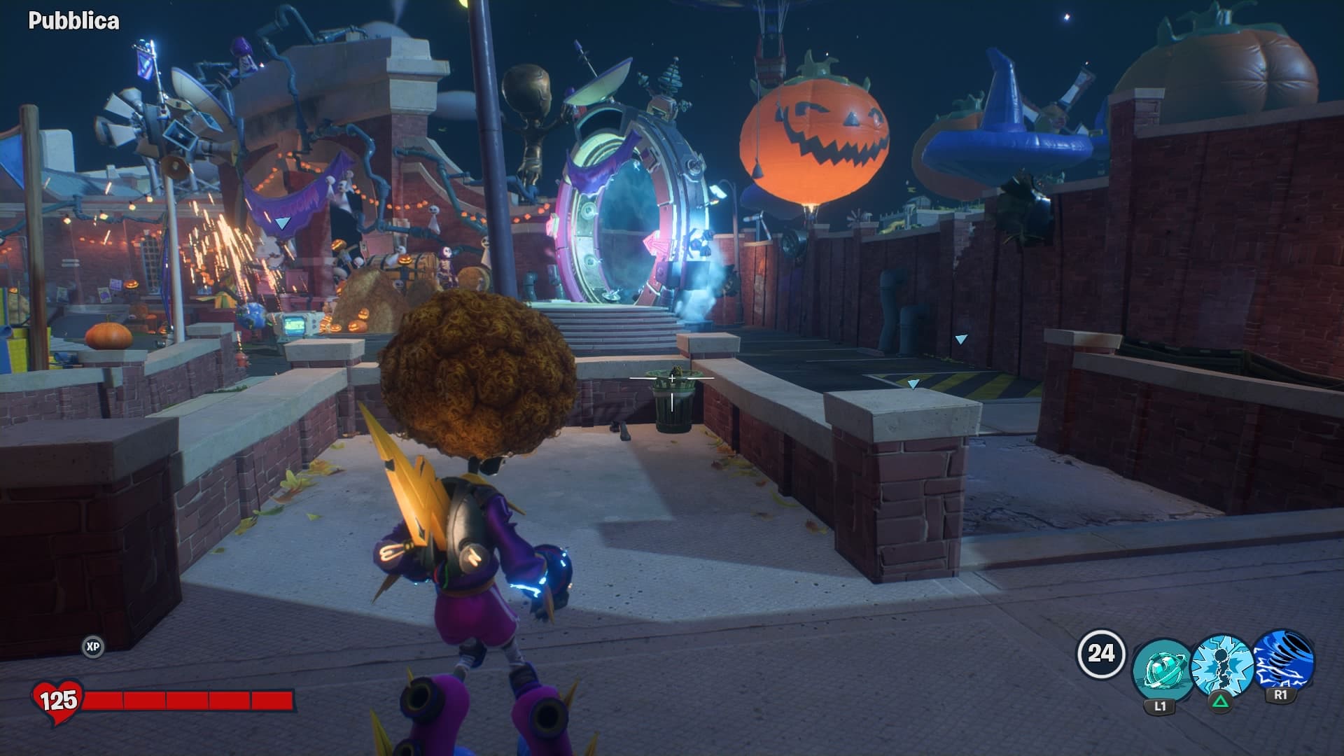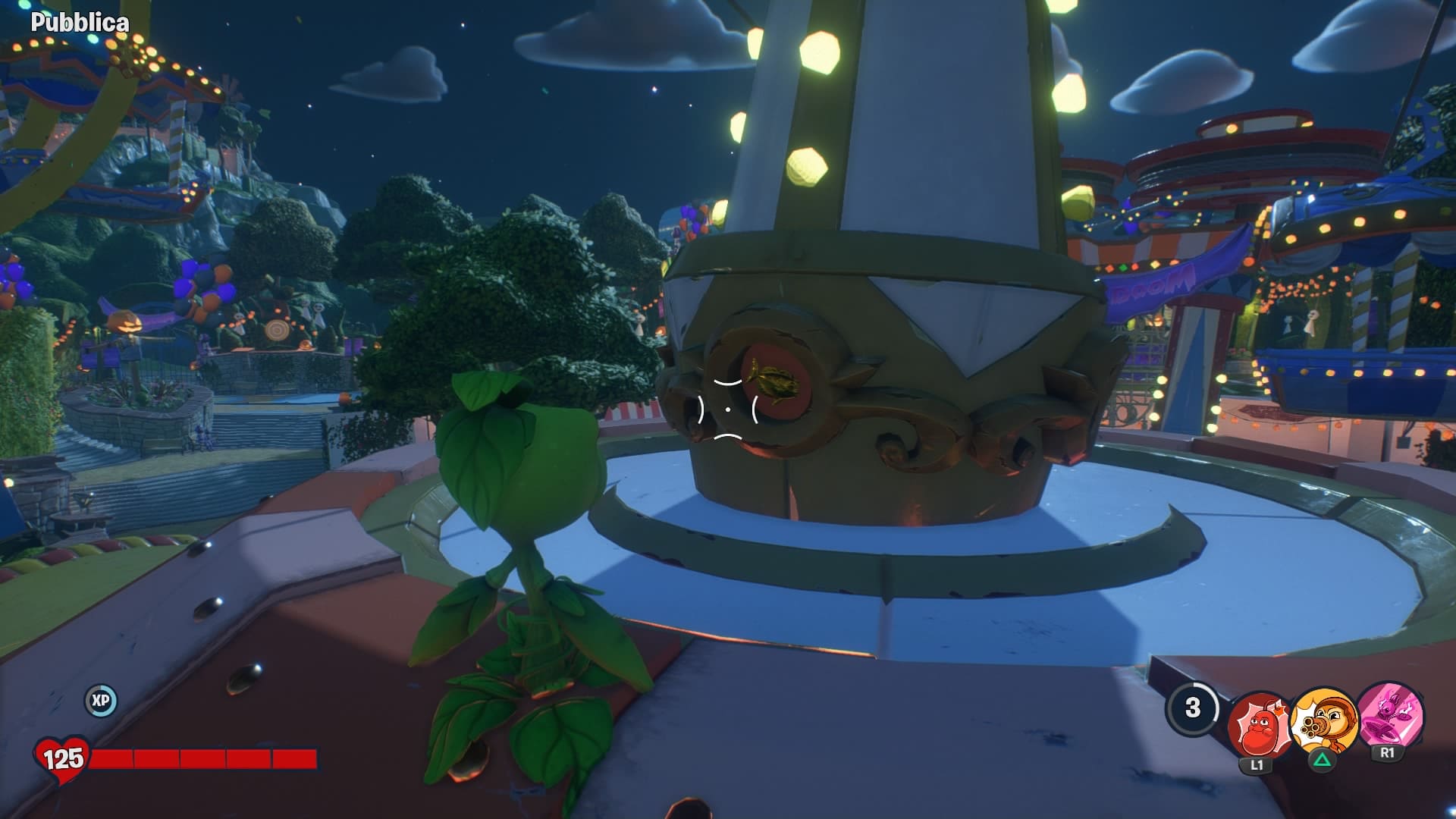 15 – Nella parte sinistra (per le piante) del parco potete trovare questa attrazione acquatica. Per salire facilmente sulle rocce e prendete la Sparasemi e usate la sua abilità di potenziamento con R1. In questo modo potrete saltare più in alto e poi premere L2 per planare.