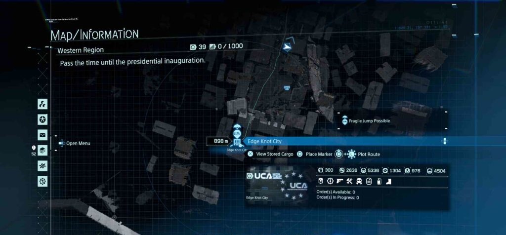 Death Stranding ha 39 Strutture UCA. Le strutture dell’UCA sono come avamposti e possono essere aggiornate per farle salire di livello. A esse sono legati due trofei: