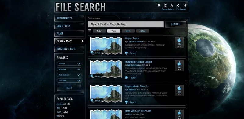 Per trovare una mappa, devi conoscere il gamertag di una persona che la possiede nella sua condivisione di file. Questo può essere chiunque, sia il creatore della mappa sia una persona a caso che ha deciso di scaricarla per poi archiviarla insieme alle altre mappe preferite. Puoi trovare i gamertag del creatore della mappa usando il vecchio sito Web di ricerca di file di Bungie. Tieni presente, tuttavia, che i creatori potrebbero non avere più le mappe nella loro condivisione file, ma un tentativo non costa nulla.