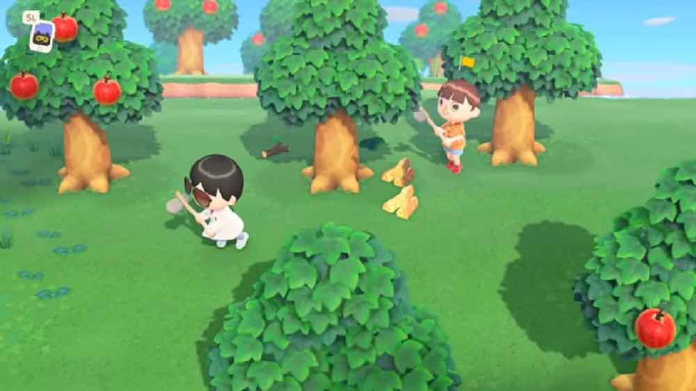 Colpire con un’accetta gli alberi vi fornirà diverse tipologie di legno con cui fabbricare oggetti mentre scuoterli a mani nude vi fornirà frutti, monete o addirittura oggetti. Se siete sfortunati vi cadrà in testa un nido di vespe ma se avete con voi il retino non tutti i mali vengono per nuocere.