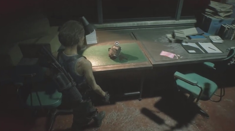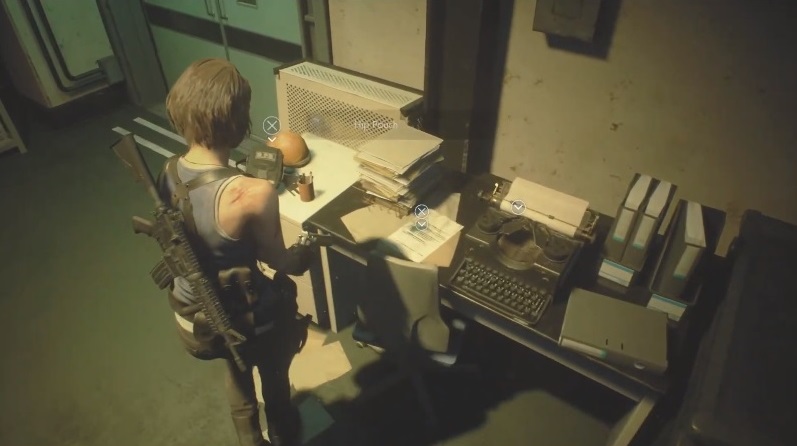 Questa volta avrete il controllo di Jill. Una volta usciti dall’ospedale, dovrete esplorare il sottosuolo. Qui c’è un deposito, entrate nella safe room per trovare il borsello sul tavolo accanto a un documento e alla macchina da scrivere.